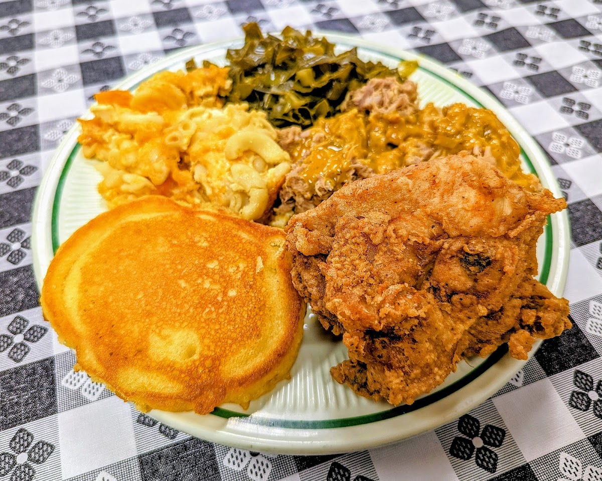 Inside, the layout respects the easy flow of conversation and the casual coming together of folks rounding up plates piled high with all the classic Southern staples. It’s not just about filling up; it’s about reconnecting with familiar tastes that evoke memories and simple pleasures. Whether drawn by the bustling, savory aroma of fried chicken crisped to perfection or the hearty comfort of macaroni and cheese, each bite is a quiet nod to tradition. And if there’s a moment to linger, the sweet finish at the dessert bar offers just the right measure of indulgence—peach cobbler and banana pudding among them—each one thoughtfully crafted to close the meal on a cozy note.