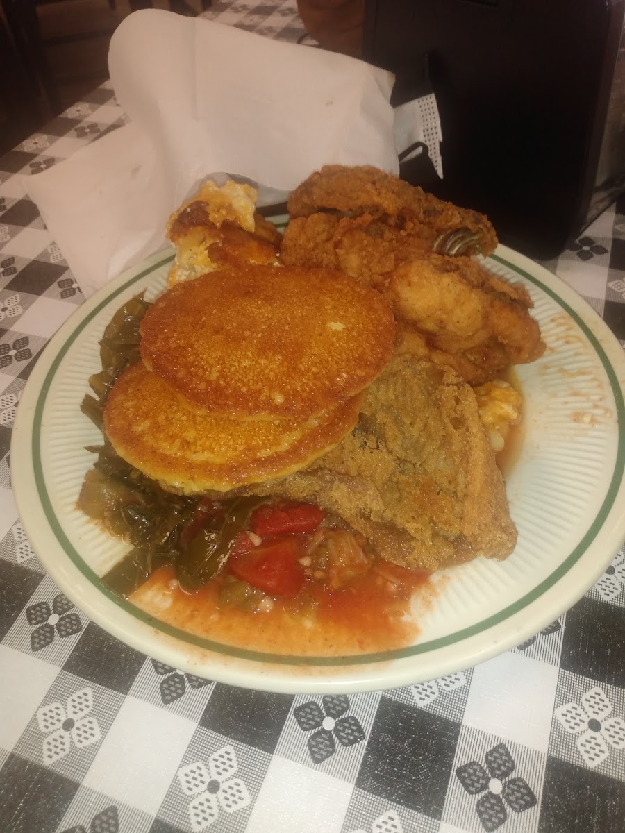 We've eaten here a few times. It's fairly straight forward. The food was good, selection varied and for the time we ate, plentiful and hot. The two items that went fast was the fried chicken and the Mac n Cheese. Not necessarily the establishments fault but other guest especially the kids pile their plates high with the fried food, you can say something but they disregard you OR dump it all back in which case the buffet manager is obliged to take the pan away (whether or not they actually change out the pan...) but I digress. The food is common southern fare, even froglegs now and again. It had the "home cookin" flare. The dessert as most nights is some kind of cobbler, I had peach it isn't bad. What was missing each time was a salad bar, not tater salad or Mac salad but fresh leafy greens with cucumbers, radishes, onions, tomatoes... and toppings, my wife wen enjoys the lighter fare! We're due for another visit soon.