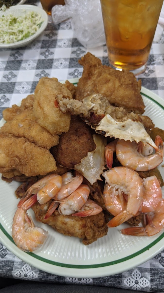 Very nice staff, good selection of food to choose from, and clean environment. The tables and seating are spaced out well. I tried the whiting, flounder, and shrimp which were decent. My sides were macaroni which was pretty good, cabbage and rice, this was ok, yams and fried okra. My favorite was the peach cobbler which had the perfect amount of spices added. I would try this establishment again. There was a pretty good variety if you have the taste for soul food. Also very affordable and under $20.